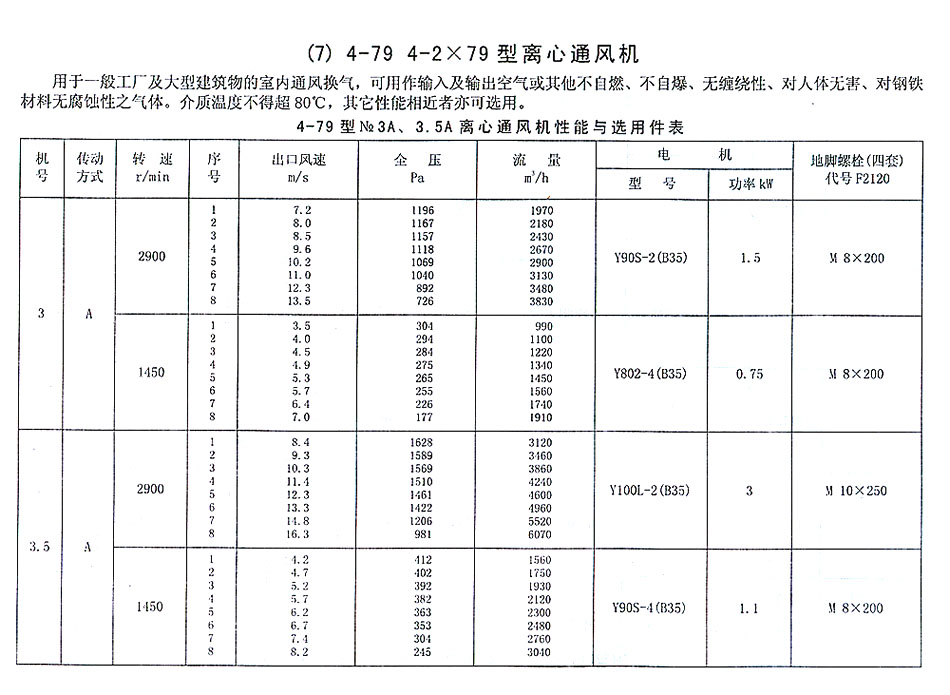 4-79型NO. 3A、3.5A性能參數表