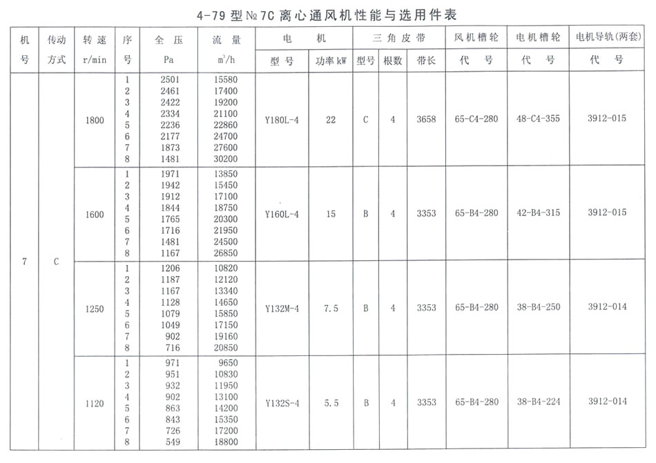 4-79型NO. 7C性能參數表