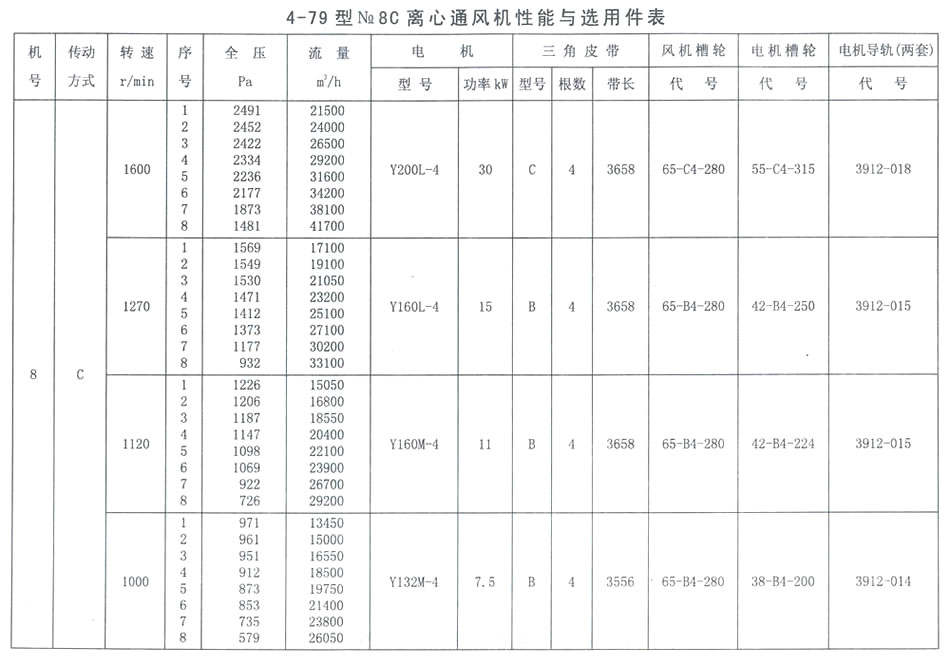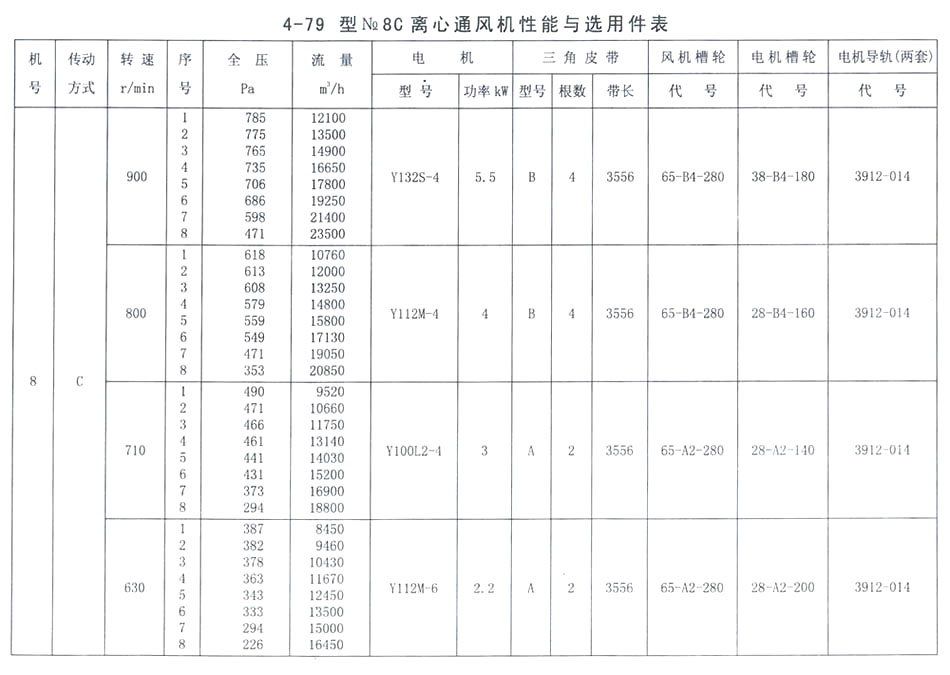 4-79型NO. 8C性能參數表