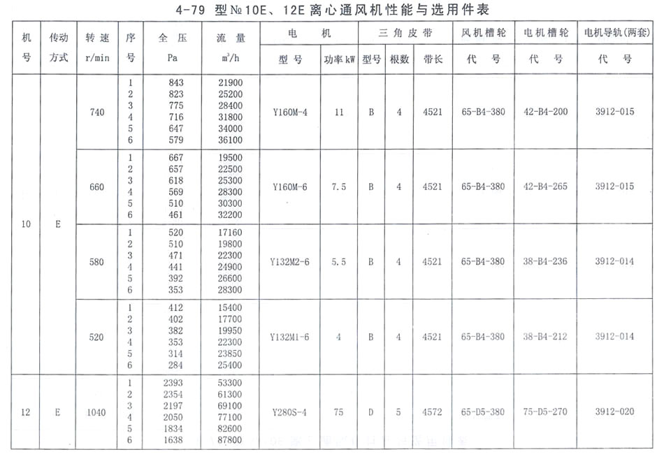 4-79型NO. 10E、12E性能參數表