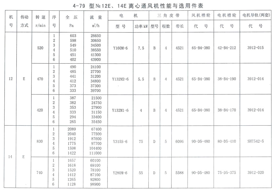 4-79型NO. 12E、14E性能參數表