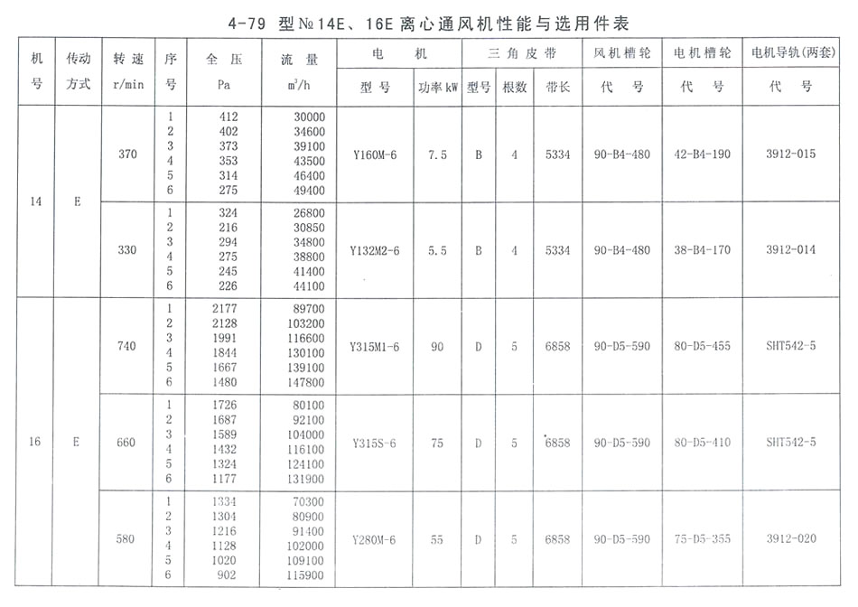 4-79型NO. 14E、16E性能參數表