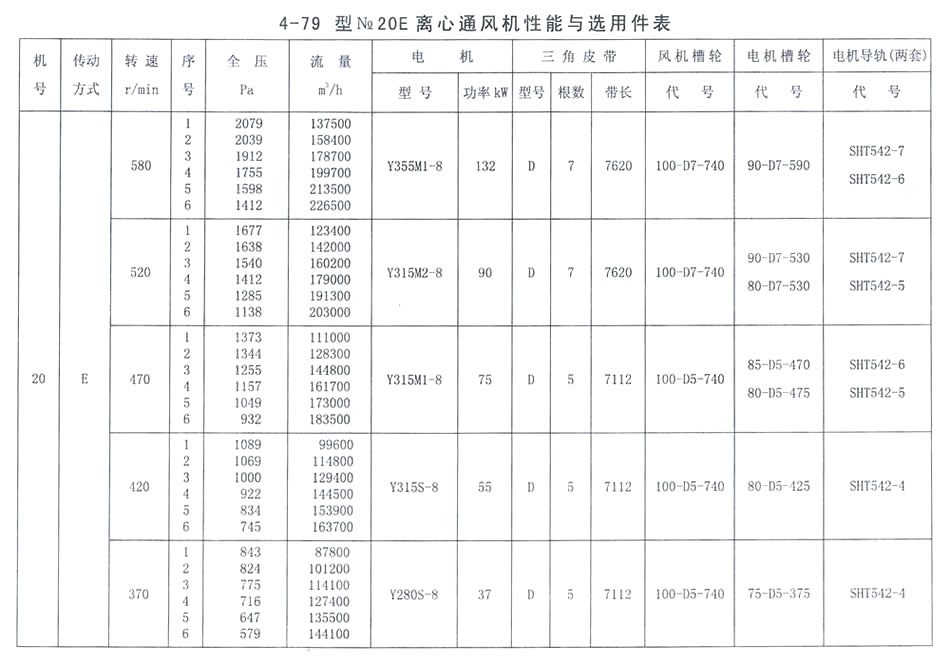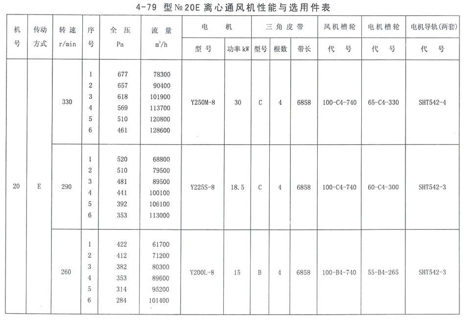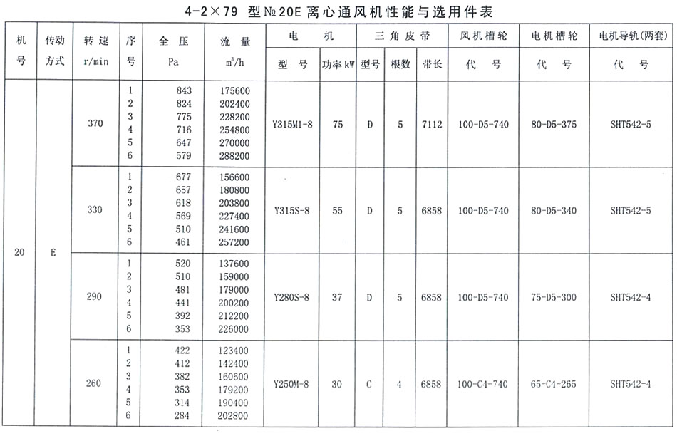 4-79型NO. 20E性能參數表