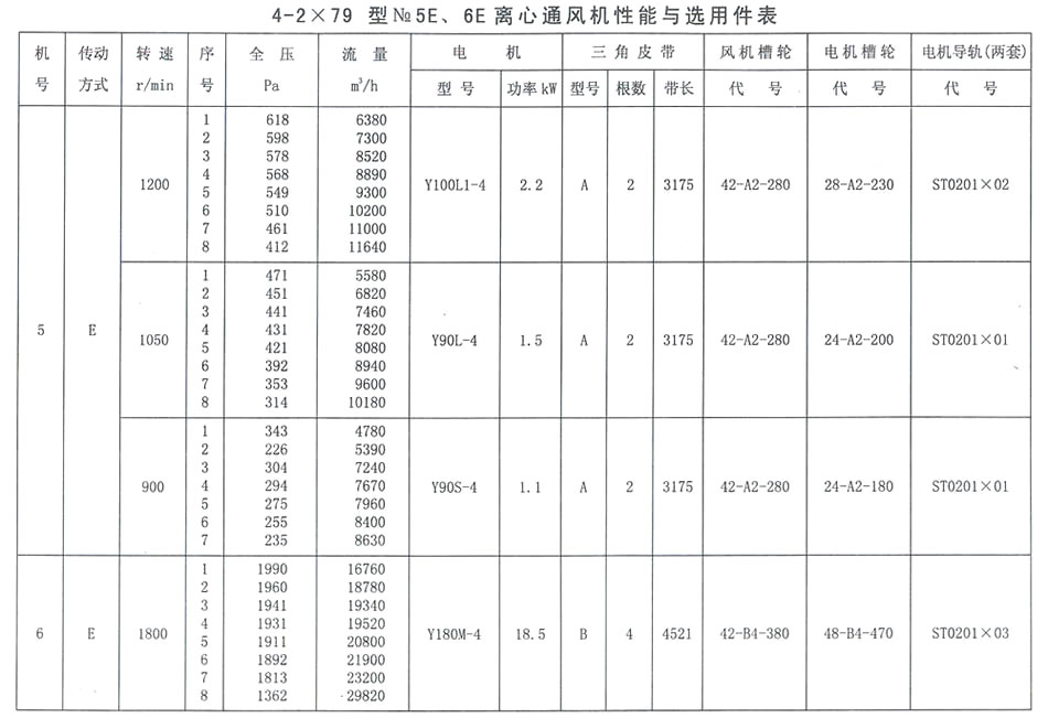 4-79型NO. 5A、6A性能參數表