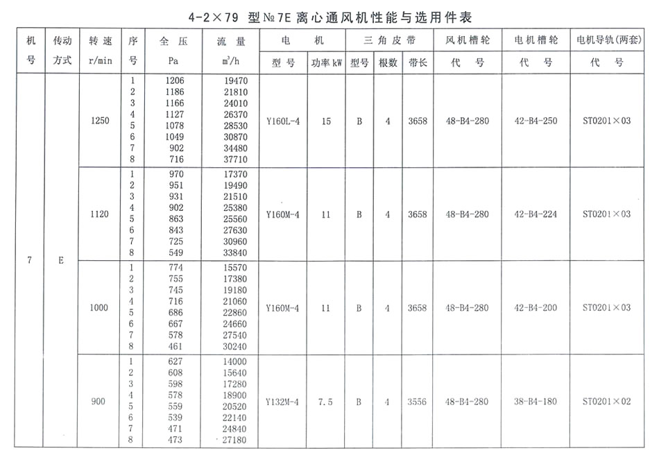 4-2X79型NO. 7E性能參數表