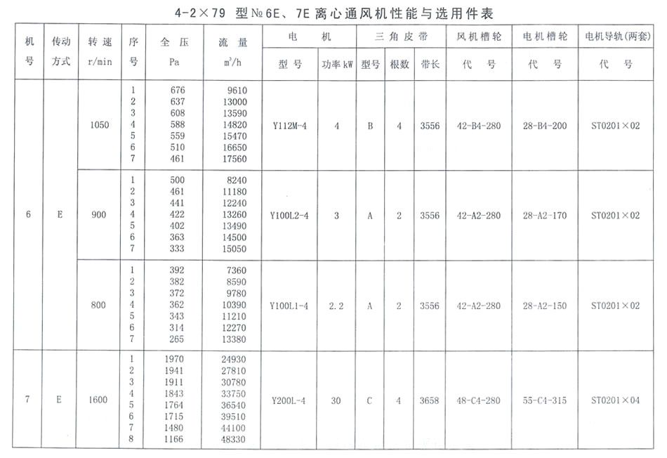 4-2X79型NO. 6E、7E性能參數表