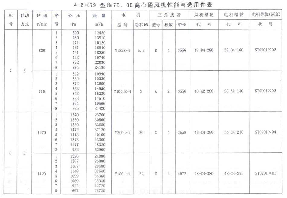 4-2X79型NO. 7E、8E性能參數表