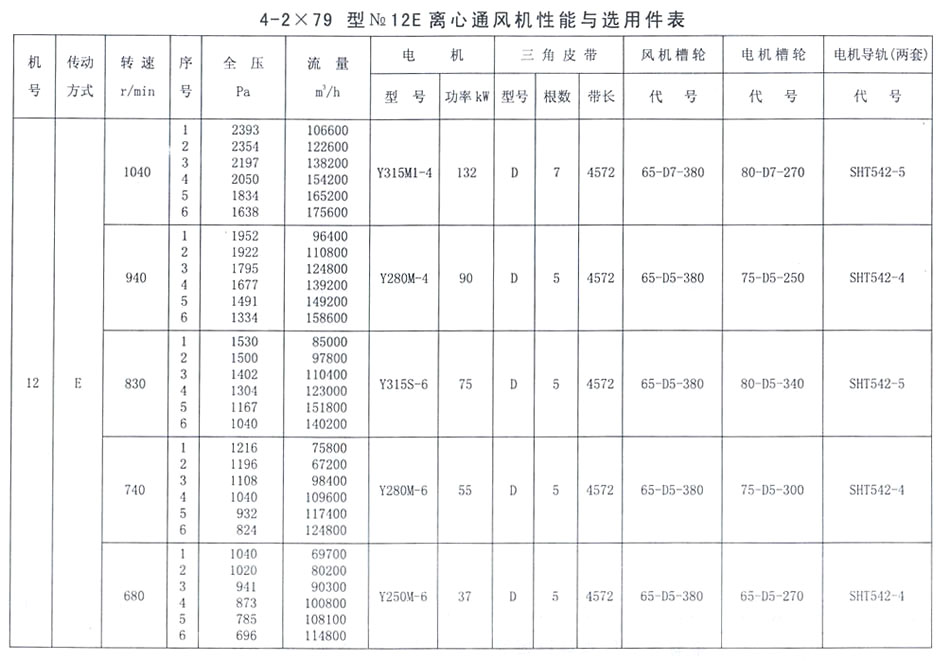 4-2X79型NO. 12E性能參數表