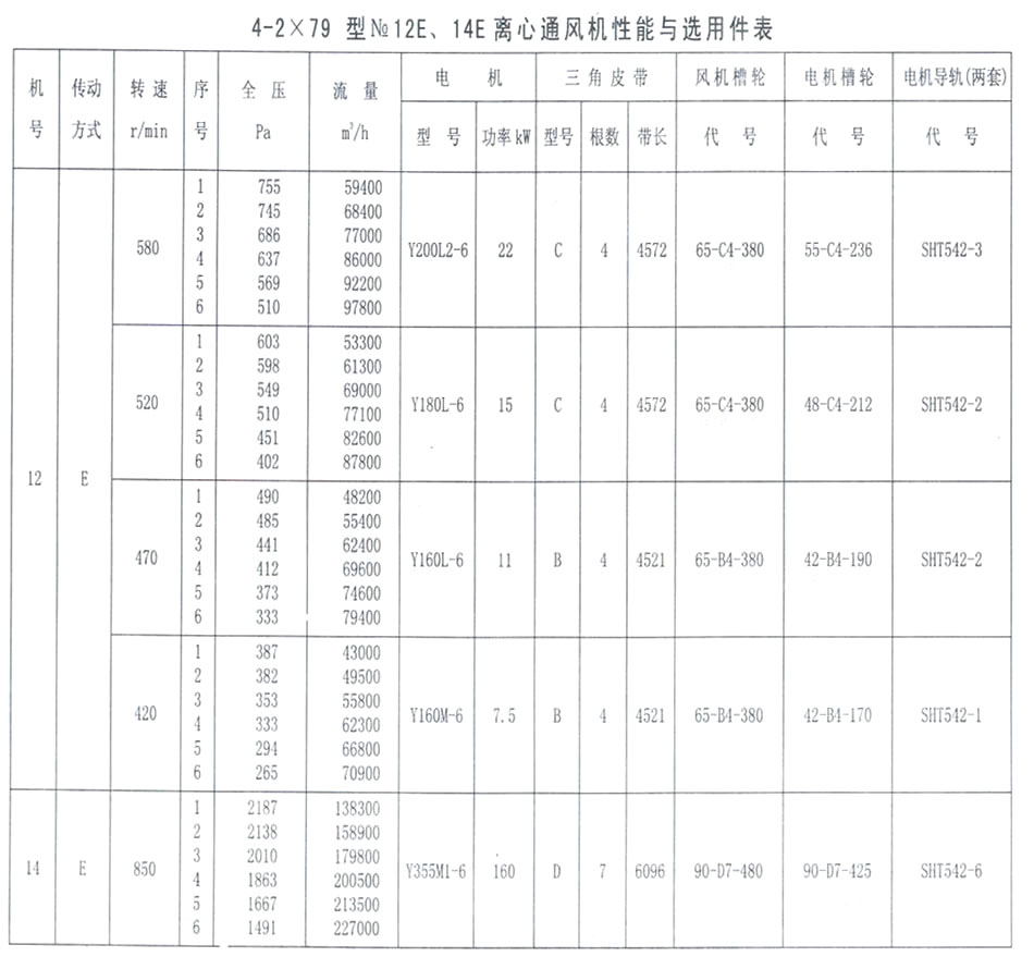 4-2X79型NO. 12E、14E性能參數表