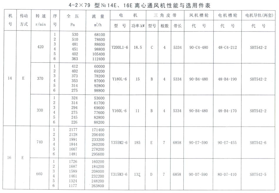 4-2X79型NO. 14E、16E性能參數表
