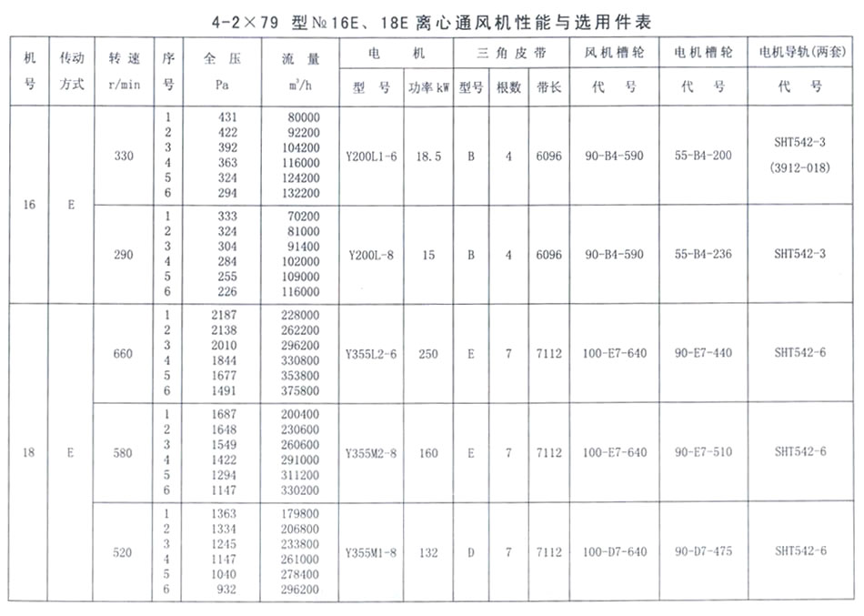 4-2X79型NO. 16E、18E性能參數表