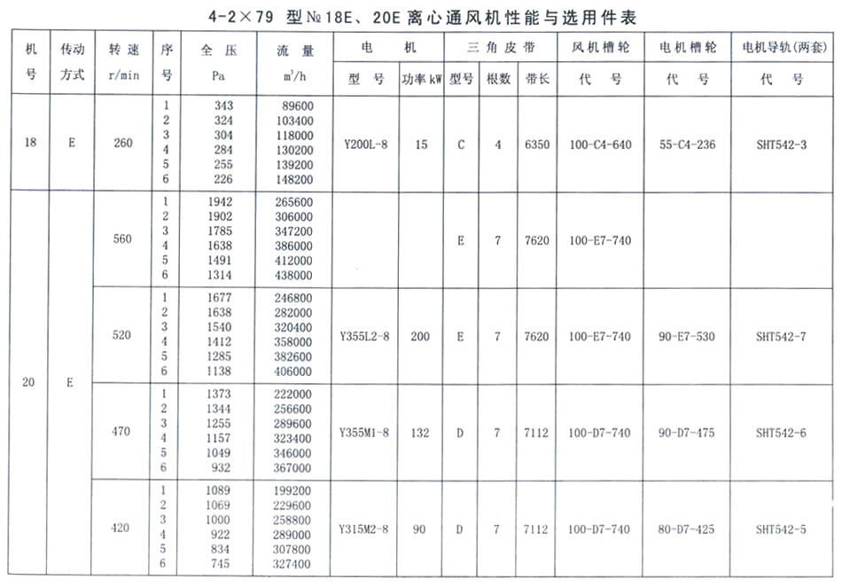 4-2X79型NO. 18E、20E性能參數表