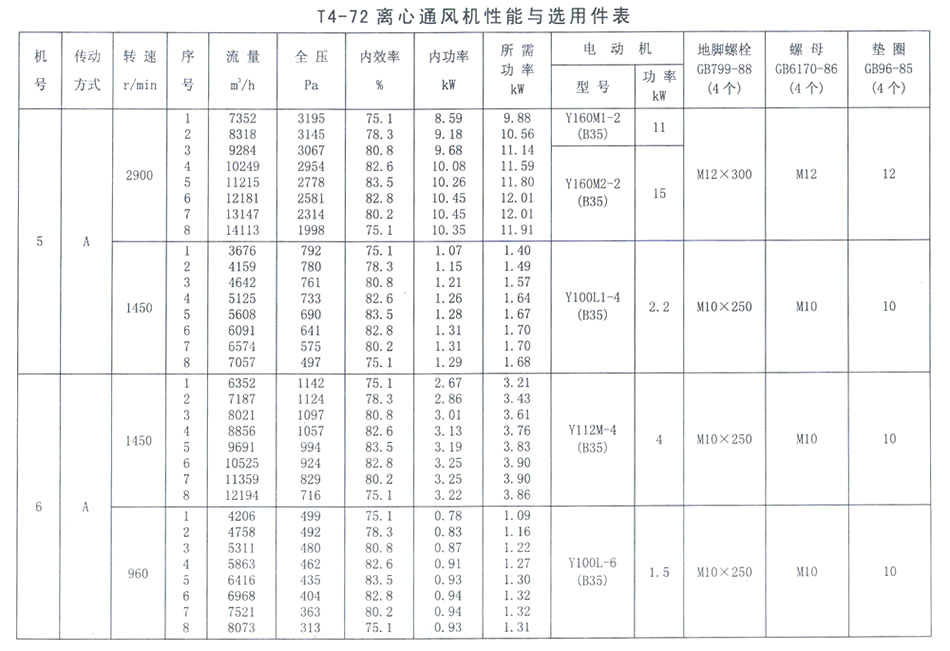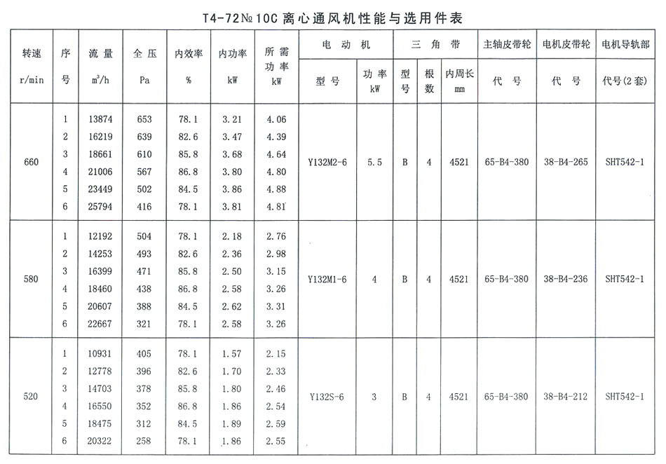 T4-72 No 10C離心通風(fēng)機(jī)性能與選用件表