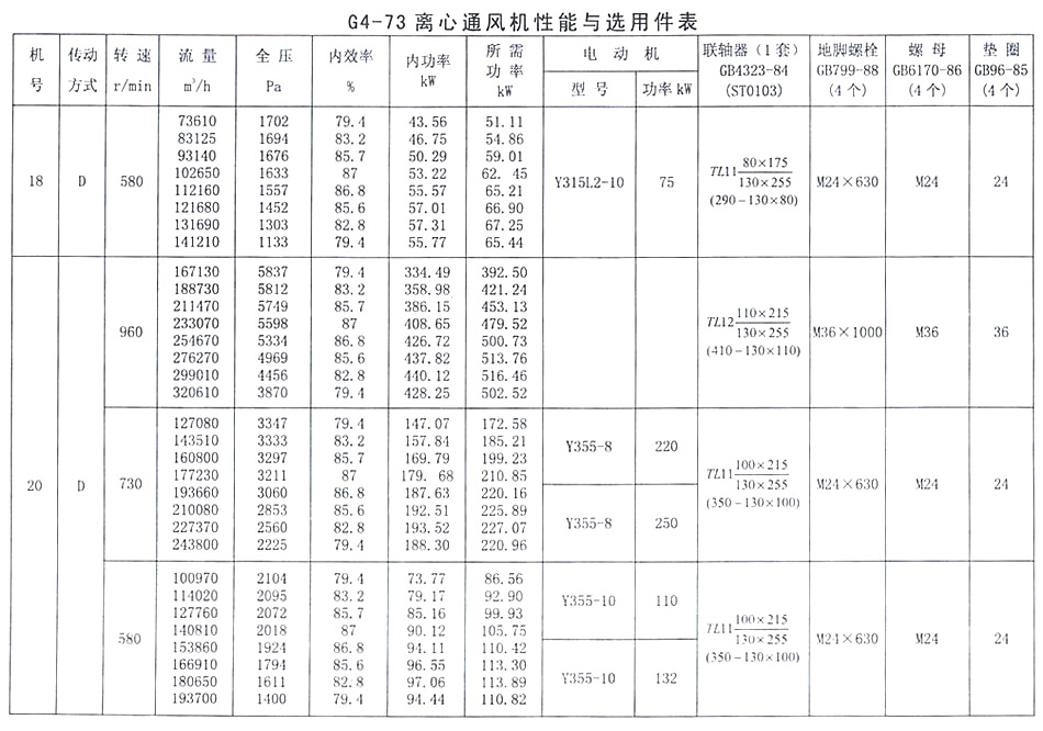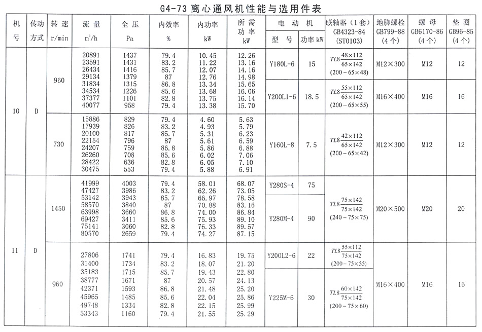 G4-73與Y4-73型鍋爐通、引風機適用于火力發電廠中2~670T/h蒸氣鍋爐的通、引風機系統。在無其它特殊要求時,G4-73亦可用于礦井通風及一般通風。