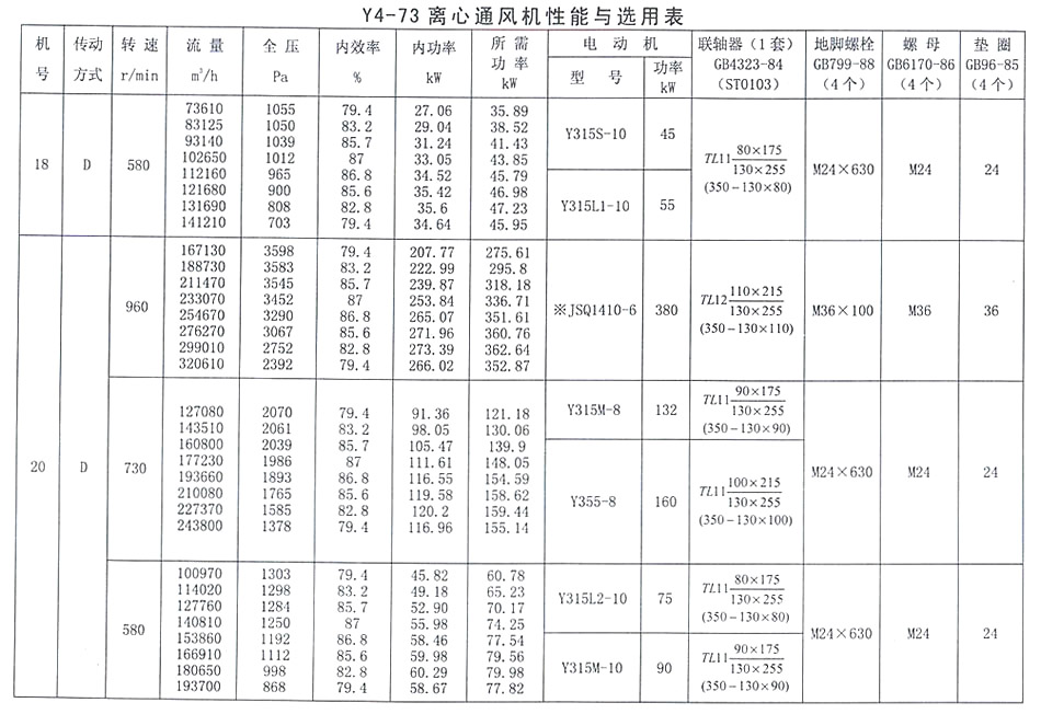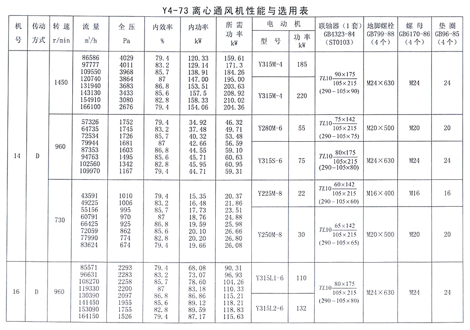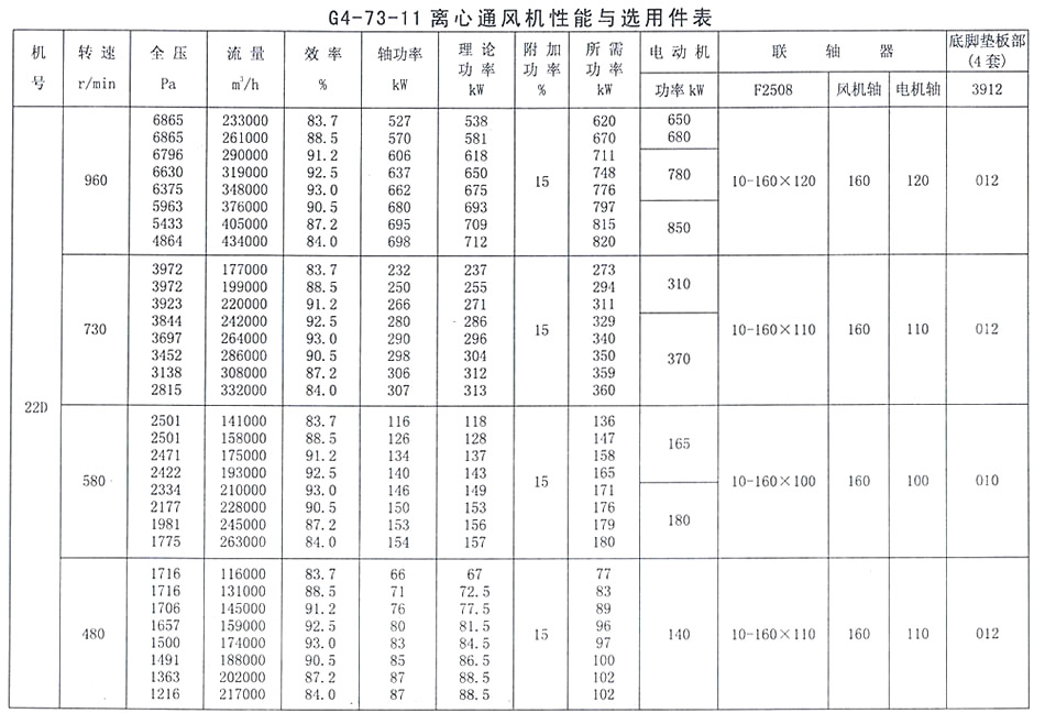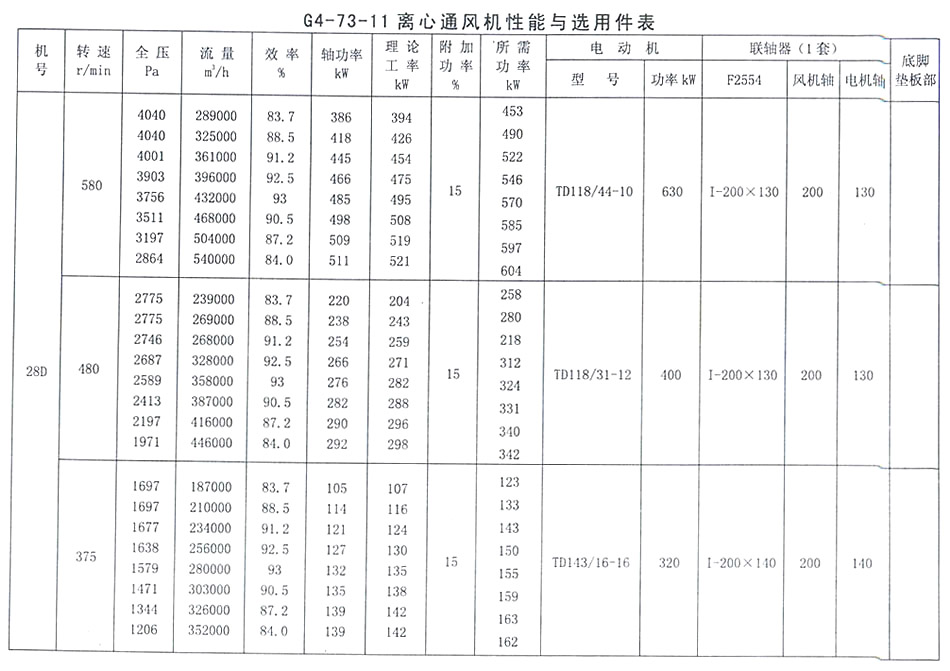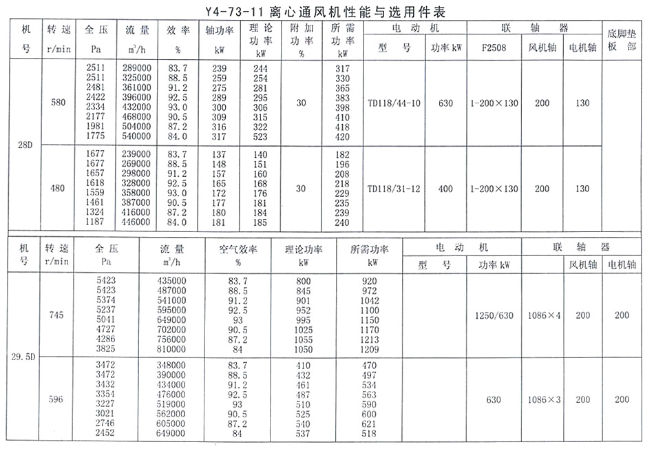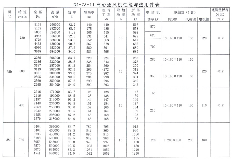 通風機輸送的介質為空氣,最高溫度不得超過80℃;引風機輸送的介質為煙氣,溫度不得超過250℃。通風機與引風機制成單吸入、各有№8~28共12個機號。