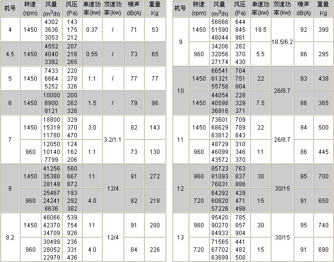 | 機號:3#-13# 風量:3000-95420m3/h 全壓:143-11200Pa |