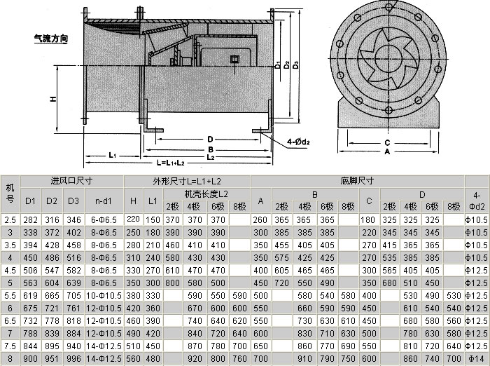 | 機號:2.5#-13.5#風量:444-79704m3/h 全壓;44-2212Pa |
